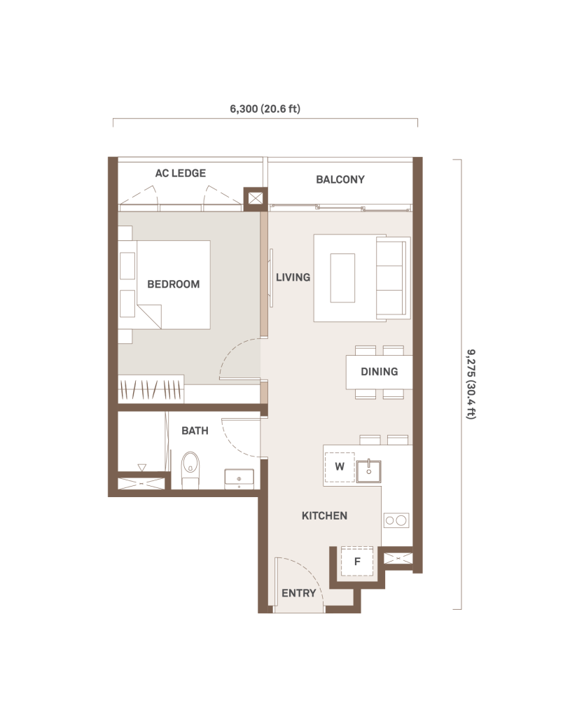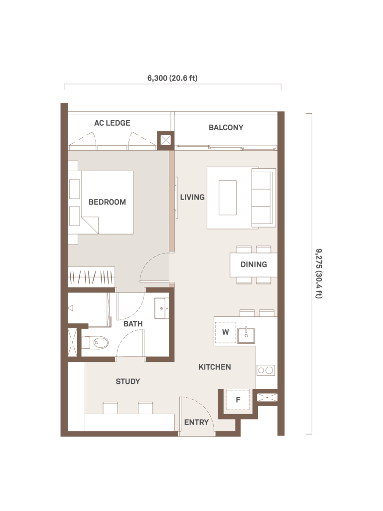 621 sqft | 1 Room | 1 Study | 1 Bathroom | 1 Balcony