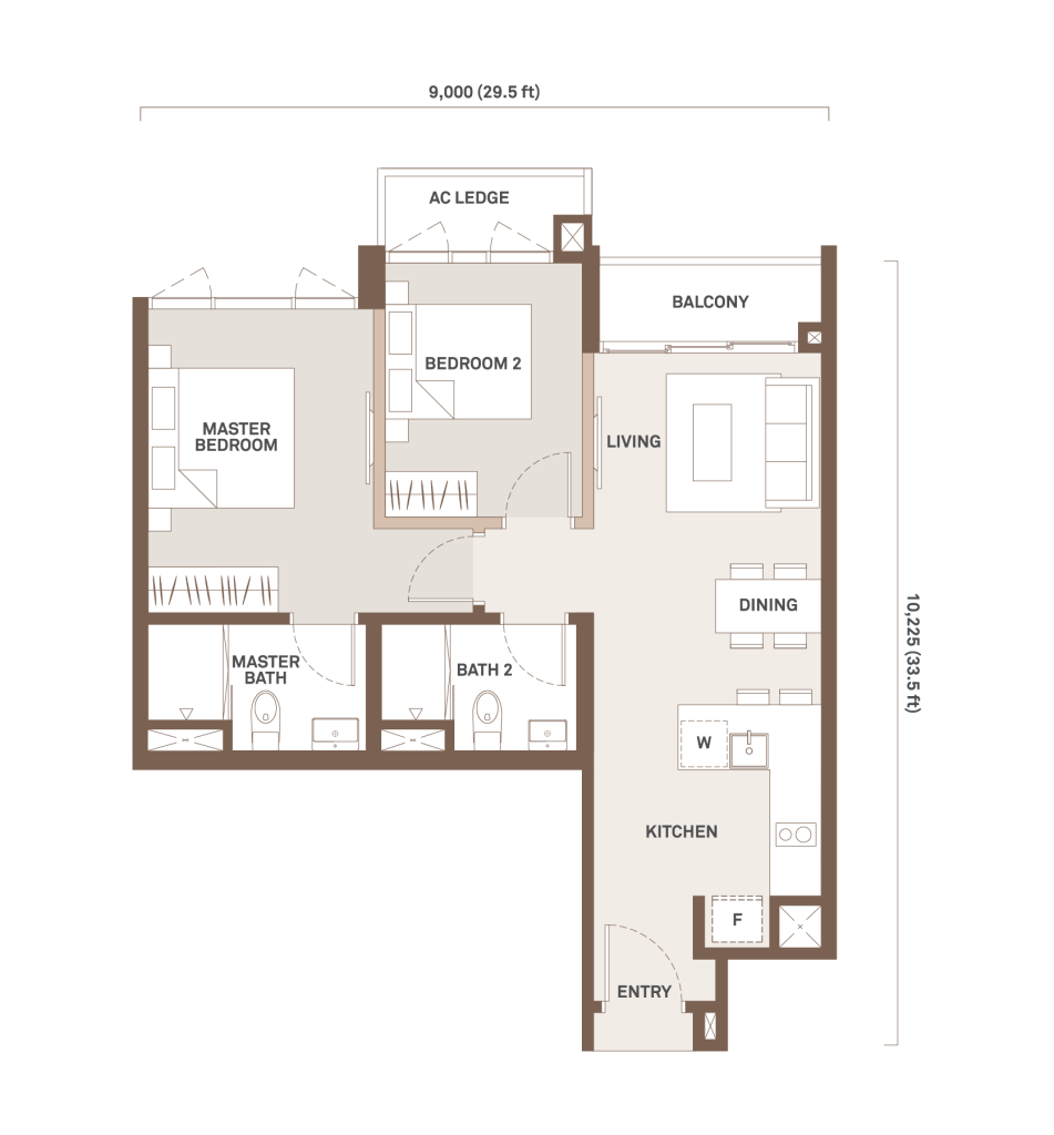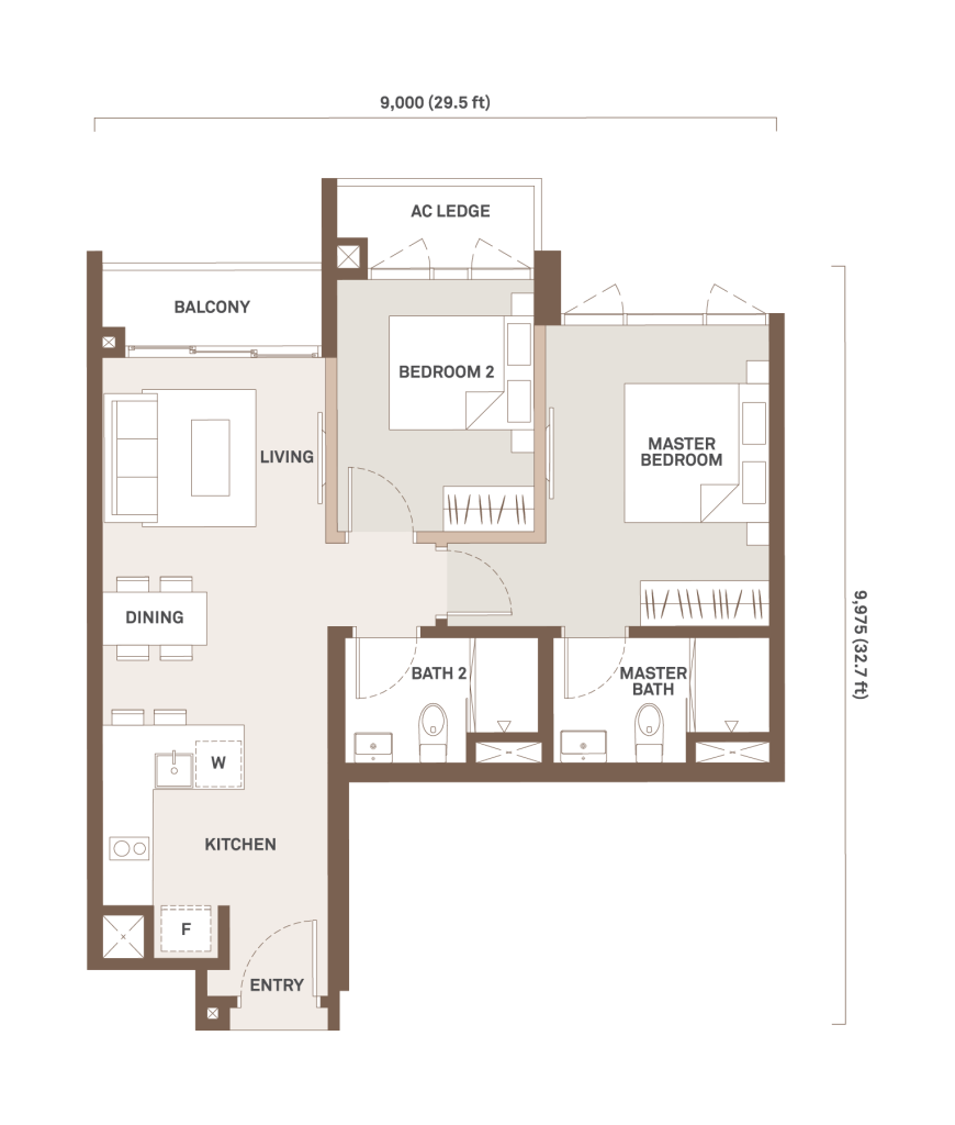 756 sqft | 2 Rooms | 2 Bathrooms | 1 Balcony