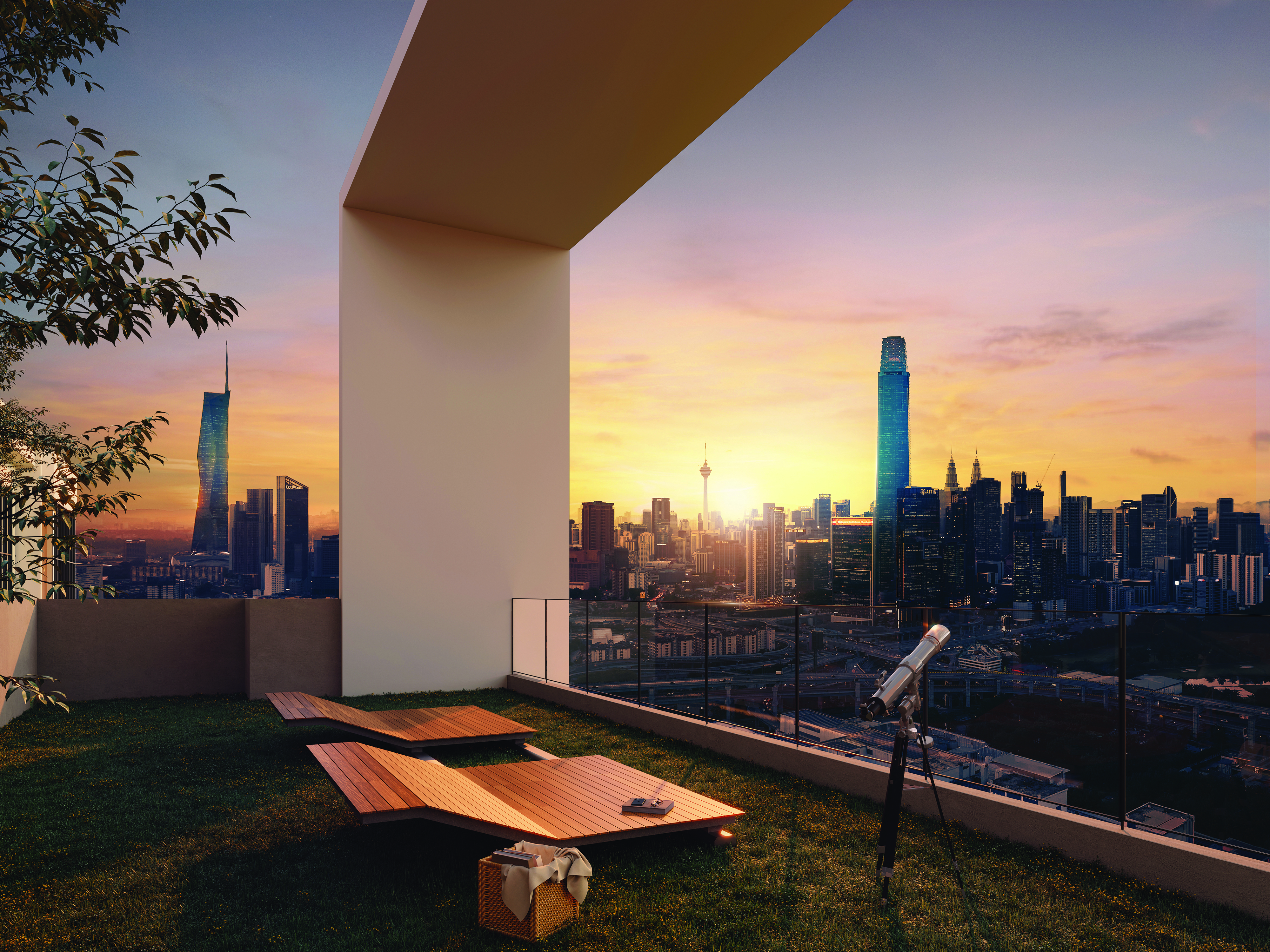 - Rooftop views of TRX, Merdeka 118, KLCC & KL Tower.