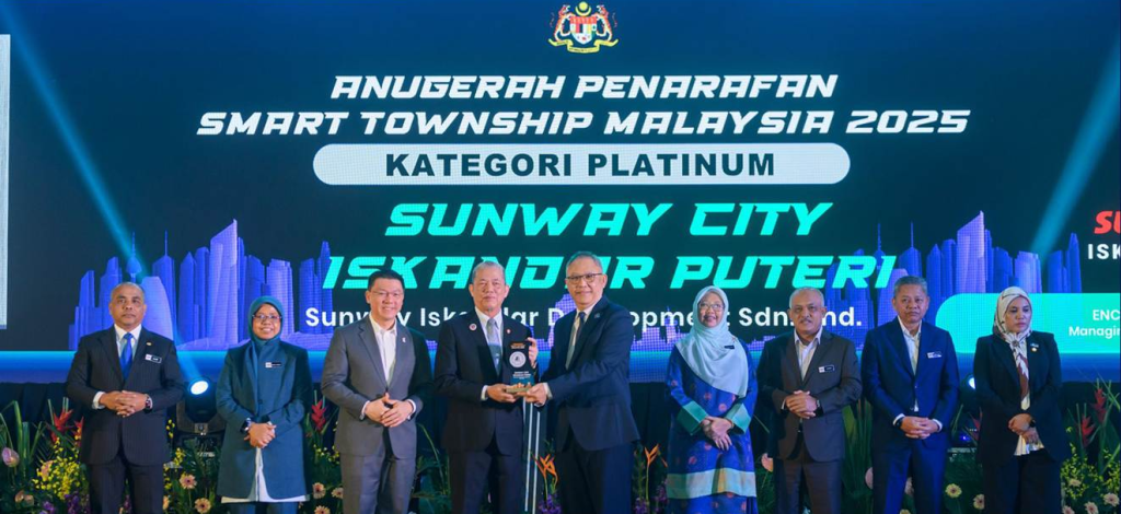 Sunway City Iskandar Puteri earned the Platinum Distinction — the highest honour — at the Smart Township Malaysia 2025 Awards, ranking first out of 15 townships