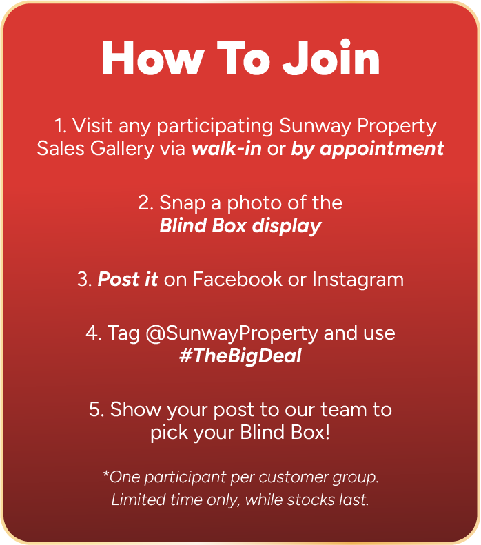 Get ready for The BIG Deal – Sunway Property’s most iconic nationwide campaign yet. From welcome surprises to exceptional prizes, owning a signature Sunway home has never been this rewarding.