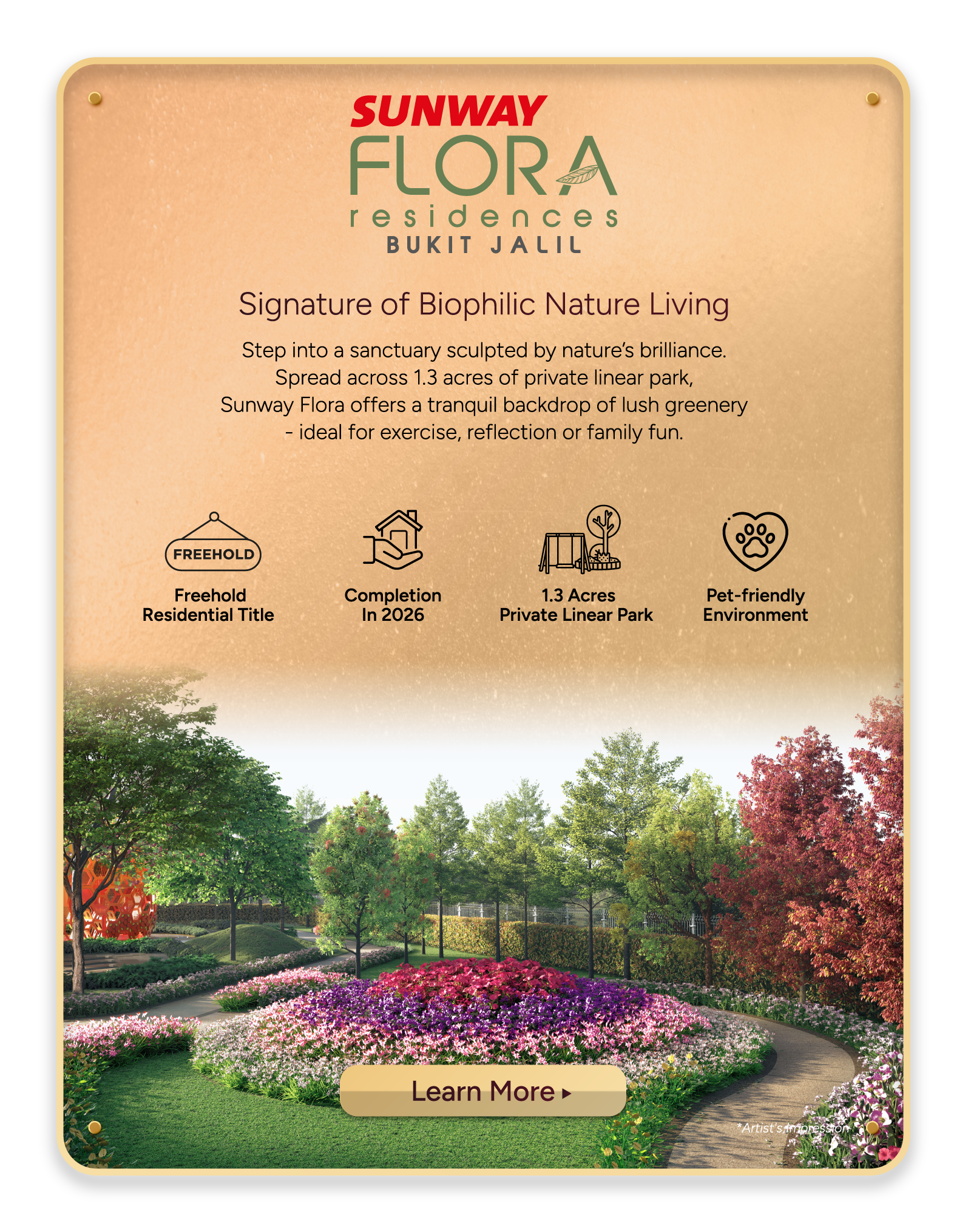 As the Master Community Developer, we design more than just homes, we create spaces that grow with you. Our Signature Homes are built on four core pillars: Sustainability, Innovation, Health & Wellness, and Lifestyle & New Experiences. With lifestyle perks from Experience Sunway Deals and aftersales care through Sunway Property+, every moment is cared for because we’re With You For Generations.